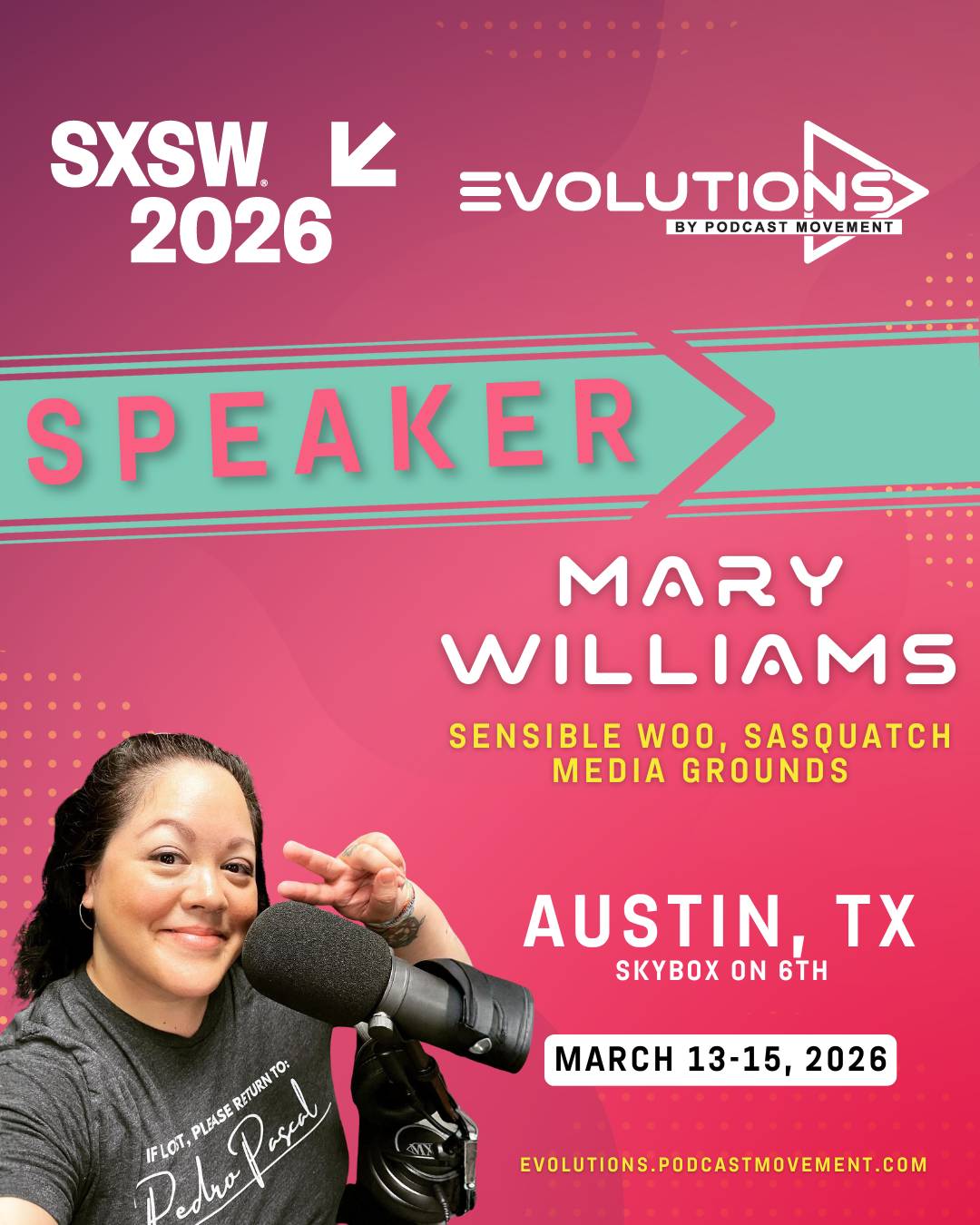 I have exciting news! I'm officially booked to speak on stage at Podcast Movement Evolutions @ SXSW. I'll be speaking on March 15th at Skybox on 6th. Priority is given to badge holders for SXSW but you can request admission through Podcast Movement for access. I'll have an interest form soon, so I can coordinate an IRL meetup for those of you headed to the ATX.